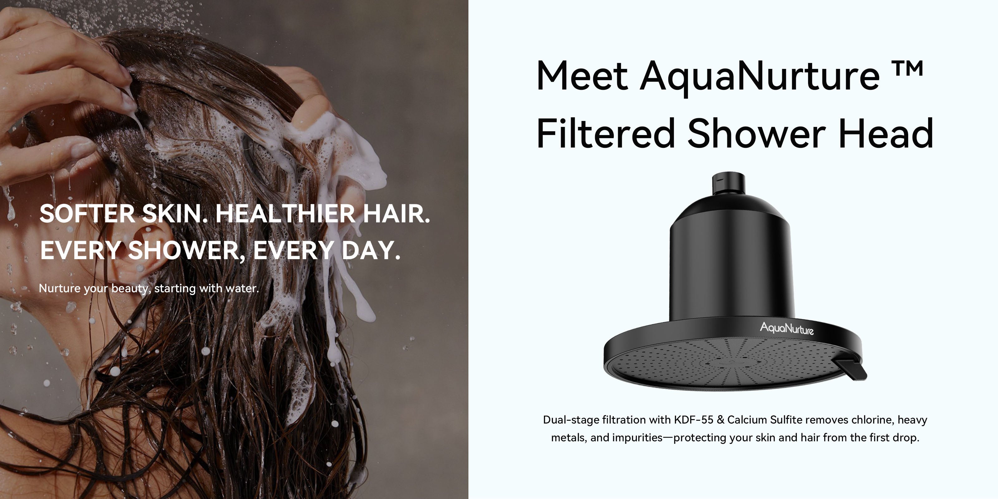 AquaNurture filtered shower heads transform everyday showers into a pure, gentle ritual.