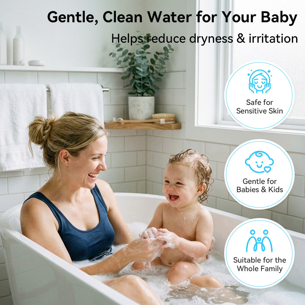 Designed with sensitive skin in mind, AquaNurture helps protect against the harsh effects of chlorine and hard water. It supports a gentler, more soothing shower experience by reducing dryness and scalp discomfort—making it safe for babies, children, and anyone seeking a calmer, healthier skin routine.
