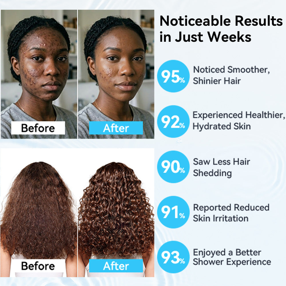 These filtering materials work together to reduce chlorine, chloride, heavy metals, and other impurities—giving you cleaner water for healthier skin and softer hair.
